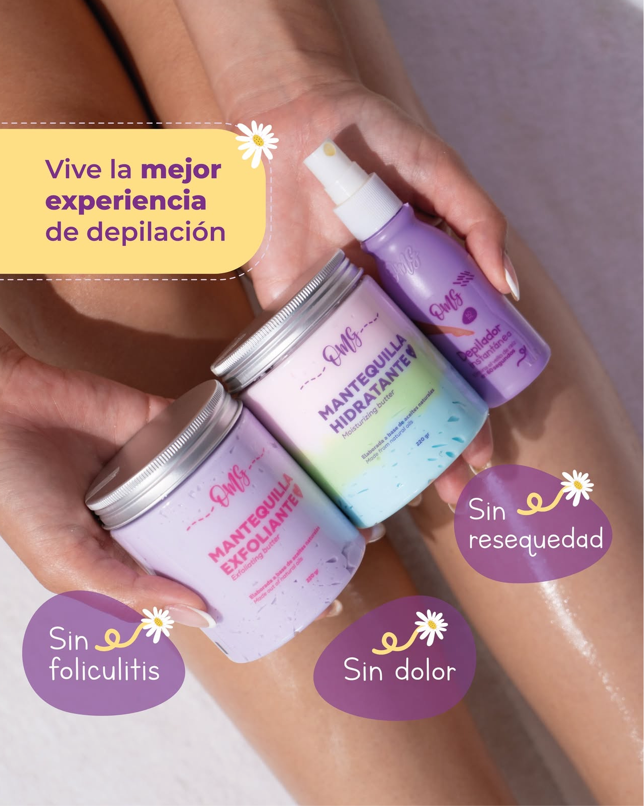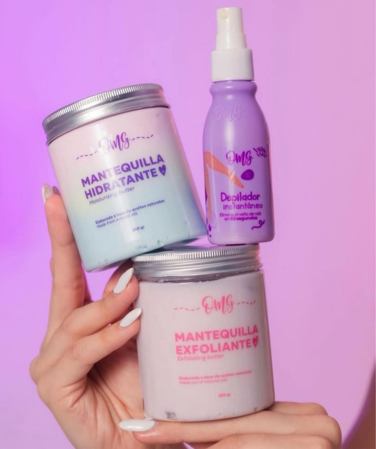 Descubre la suavidad y la humedad con el KIT OMG, el depilador que elimina eficazmente el vello mientras exfolia y humecta tu piel con su fórmula de mantequilla. Disfruta de una experiencia de depilación suave y nutritiva en todo tu cuerpo. ¡Dile adiós al vello no deseado con el KIT OMG!