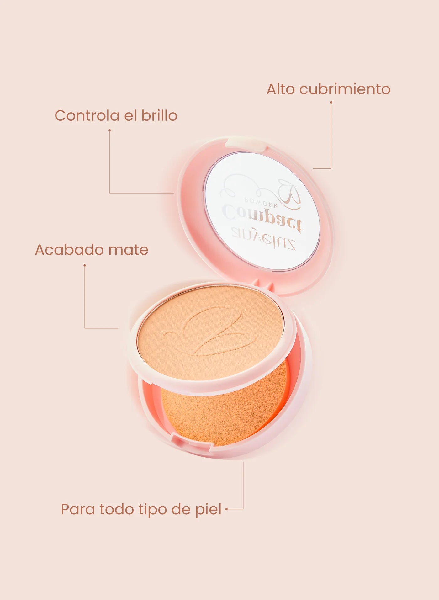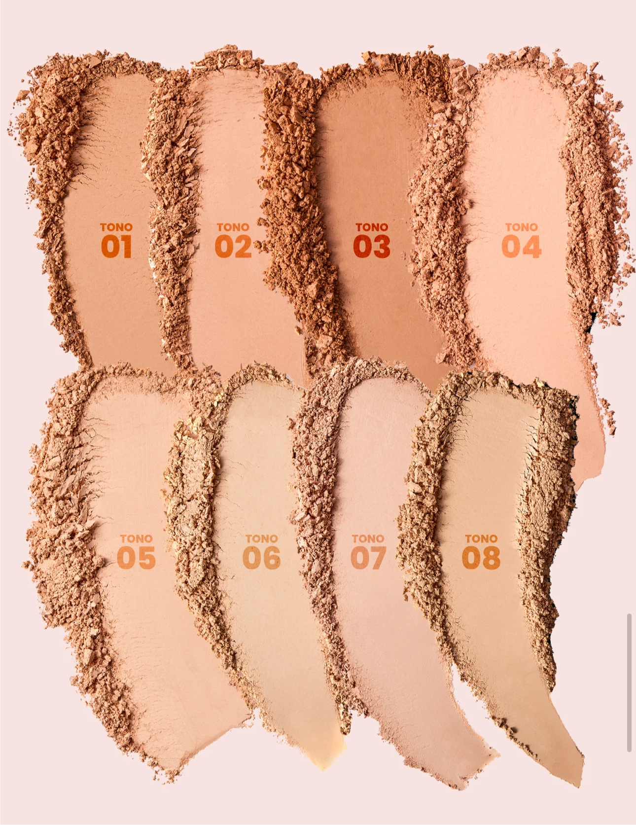 Nuestro polvo compacto es de alto cubrimiento, una solución versátil para una piel impecable todos los días. Este polvo no solo cubre imperfecciones, sino que también es ideal para el día a día, proporcionando un acabado mate y aterciopelado que se ve y se siente natural.
