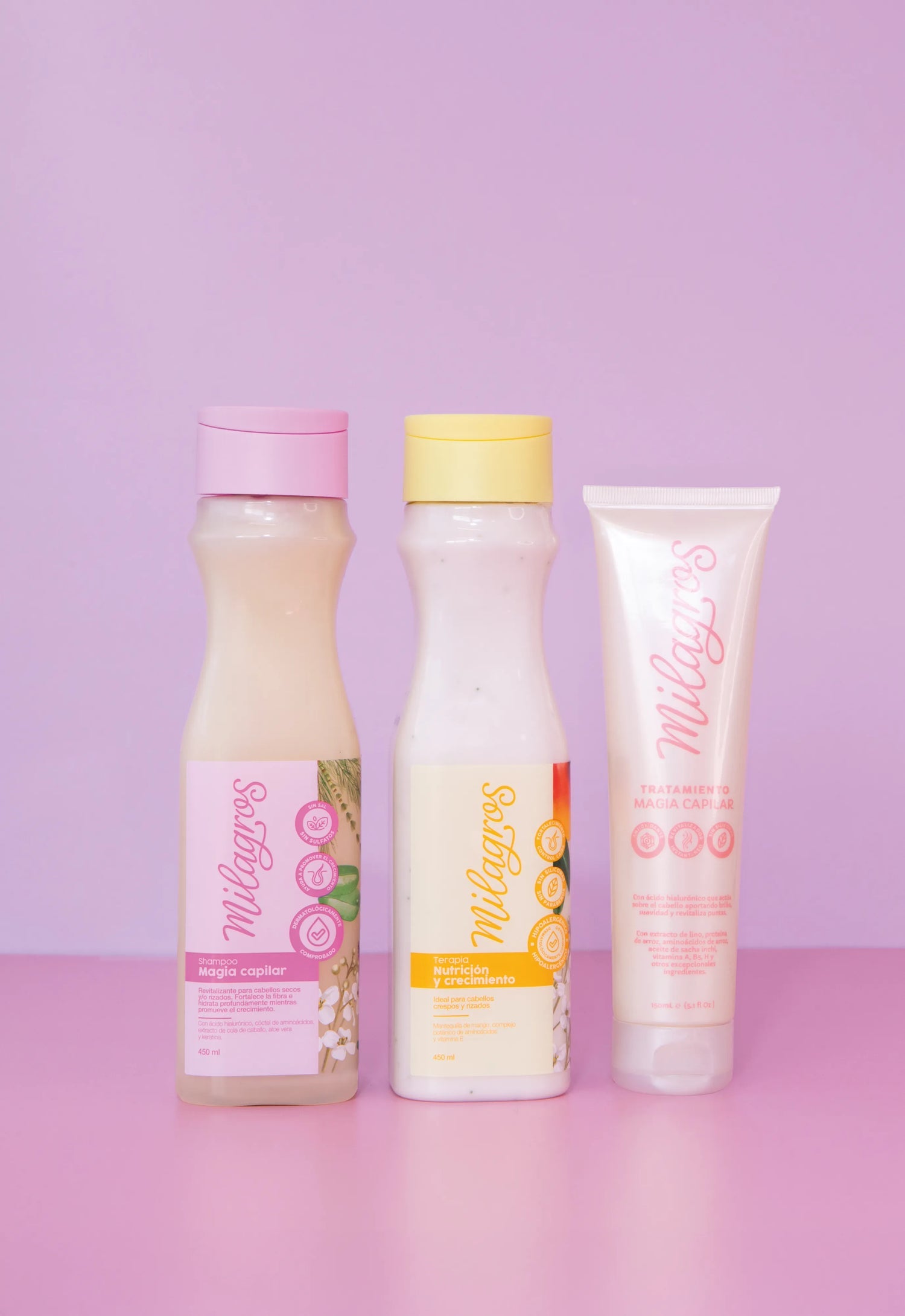Lava tu cabello con el shampoo magia capilar, déjalo actuar por 5 minutos para aprovechar la concentración de nutrientes. Retira con agua y usa el acondicionador milagro herbal.